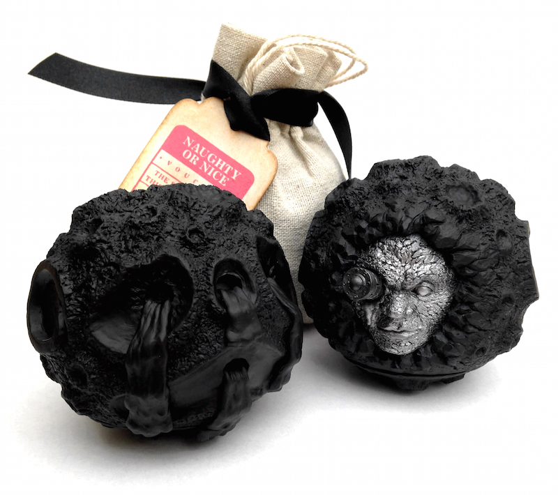 We’re very proud to unveil the second exclusive our very own Tru:Tek will have up for grabs at Designer Con ’15 next weekend, The Disarticulators‘ “Lump O’ Oozeball” sofubi! The perfect gift for that naughty grown up child in your life (and a little nicer on the toy shelf than a lump of real coal!), the Tru:Tek designed, Zectron sculpted figure has been produced in a squishy matt black soft vinyl this time around, coming fitted with that all important squeaker on the underside. Limited to an edition of just 15 balls – with 1 in 5 hand painted by Tru:Tek – each comes packed in a deluxe linen drawstring coal sack with handmade gift tag for just $50 each. Look out for these an more from Tru:Tek via Skinner‘s DCon booth (number forthcoming) starting Saturday, November 21st…