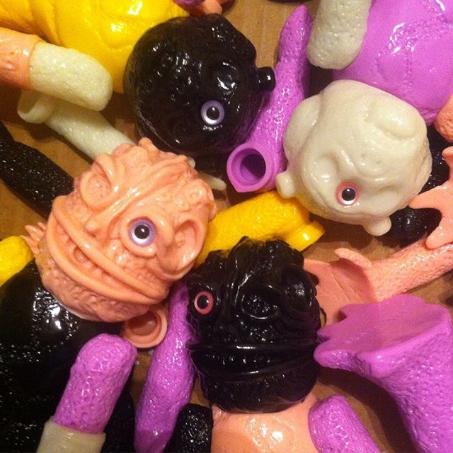 Slave x One are proud the announce the official debut of Haku and Yadokai today with the surprise coming of a “One Eyed Soul Eater” blind bag release! Standing at around 6.5″ tall each, these neo-kaiju creations have been co-created alongside fellow artist UnaffiliatedSJ, featuring the OG Gero body with alternate heads, arm attachments and a bonus “slum” building omake. Available blind in a mix of flesh, purple, GID and yellow mixed parts, the pair are currently available through the SxO store right here for just $60 each plus shipping…