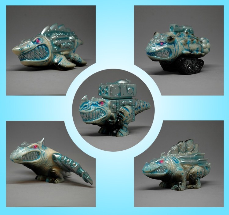 James Groman and Toy Art Gallery‘s hugely popular BC Blaster series is set to return this week in their first painted colorway… the “Frost Bite” edition! Featuring a total of 5 different designs; Tanklasaurus, Pteranajet, Jurassic Shark, Strike-asaur and Rocket Rex; each 5″ long, 2-part figure has been cast by TAG in a Japanese soft vinyl, coming with pink, silver and black sprays over an arctic blue rub. Available for $45 each or just $175 for the set, the “Frost Bite” BC Blasters will be touching down in the TAG store store today (6/17) at Noon Pacific time…