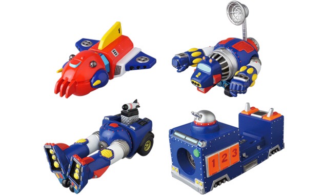 Having only seen 2 extremely limited releases since its debut earlier in the year, the highly sought after Rikidizer 3 sofubi set will finally be available to the general public (albeit in limited numbers) as a Medicom Toy exclusive this week! Produced by Goro with help from NagNagNag, the ultimate super ‘bot borrows elements from a number of classic Kaiju mecha, including Mach Baron, King Joe and Gundam, to form one of the most exquisitely designed and produced sofubi we’ve ever witnessed.