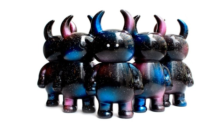 Uamou‘s signature sofubi mini returns this week in an all-new “Quiet Galaxy” colorway! Standing at just under 3″ tall, the super-cute 2-part mini has been produced in a glossy pitch black soft vinyl this time, coming with metallic blue and pink sprays with a glitter finish courtesy of master painter Goto-san. Currently up for grabs in limited numbers through the Uamou store for just 3,000yen plus shipping, expect to see the little guy joined by a number of other “Quiet Galaxy” releases over the next couple of months…