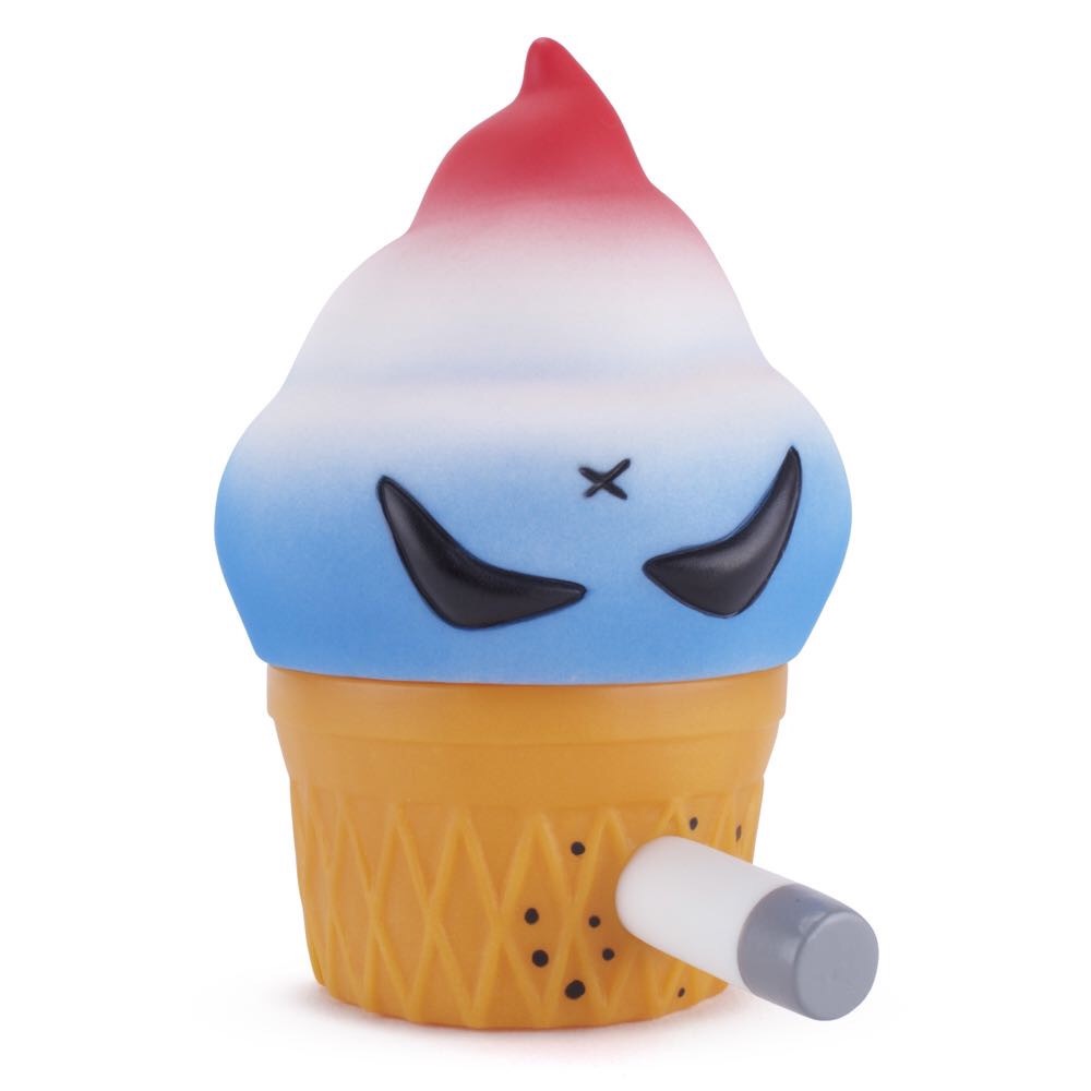 Rotofugi and Squibbles Ink are proud to announce the return of Frank Kozik‘s Jerome sofubi in an all-new “Rocket Pop” colorway! Designed by Kozik and produced by Squibbles Ink, the 4″ tall soft vinyl figure has been cast in a mix of white and light brown, the time coming hand sprayed in a gorgeous red/white/blue fade reminiscent of the classic Rocket Pop ice lollys. Packed with removable “Smork” accessory, this new summertime Jerome has been limited to 75 pieces priced at just $19.95 each plus shipping. Look out for them in the Rotofugi store this Friday, July 1st at 10am Central time…