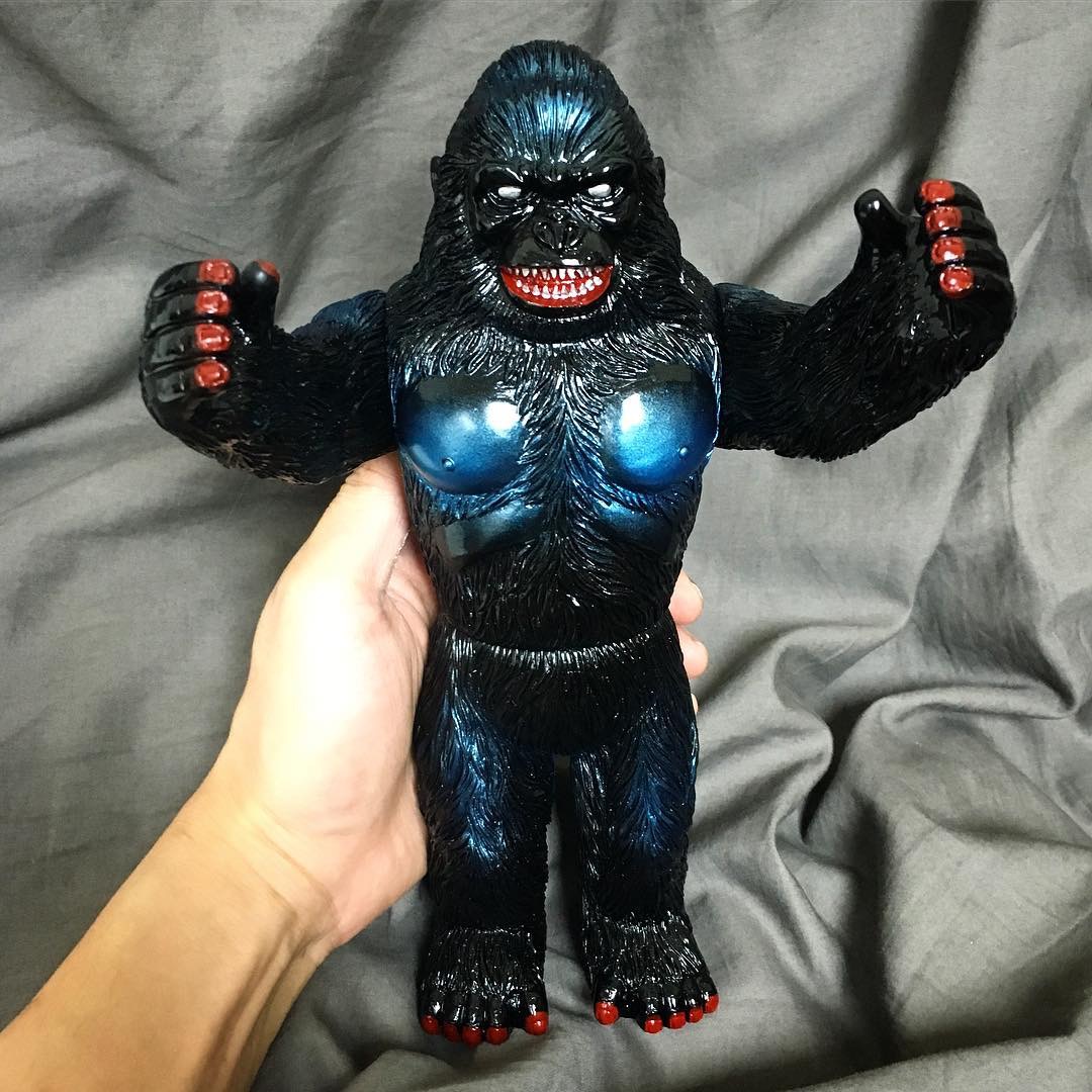 - Cast in a black soft vinyl and treated to a metallic blue, red and white paint app inspired by Mego and Bullmark’s 1970’s King Kong sofubi