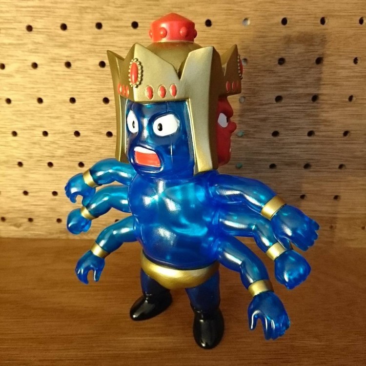 - The multi-faced Ashuraman has been cast in a clear blue sofubi this time around, coming with masked gold, black and red sprays