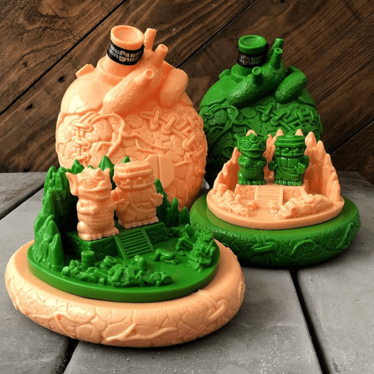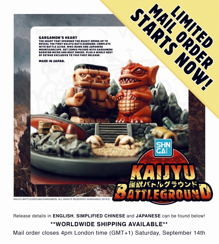 - The first Kaijyu Battleground playset – Gargamon Vs Baraton – has its roots dug firm in Toho’s Frankenstein CtW and follow-up, War of the Gargantuas, featuring a similar heart (the playsets shell), caveman-like character and kaiju, all set against a post-war landscape in a Mighty Max-style, clamshell format.