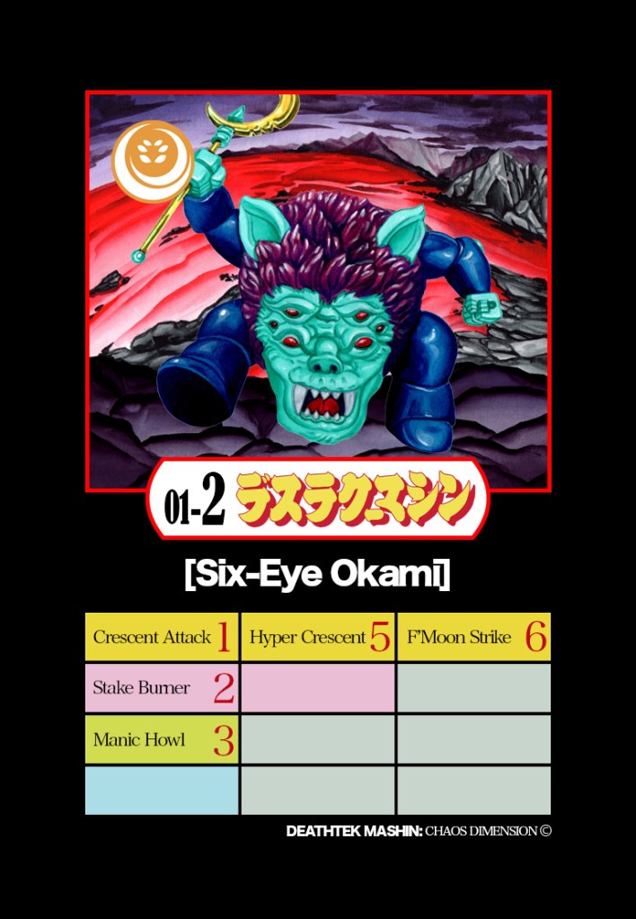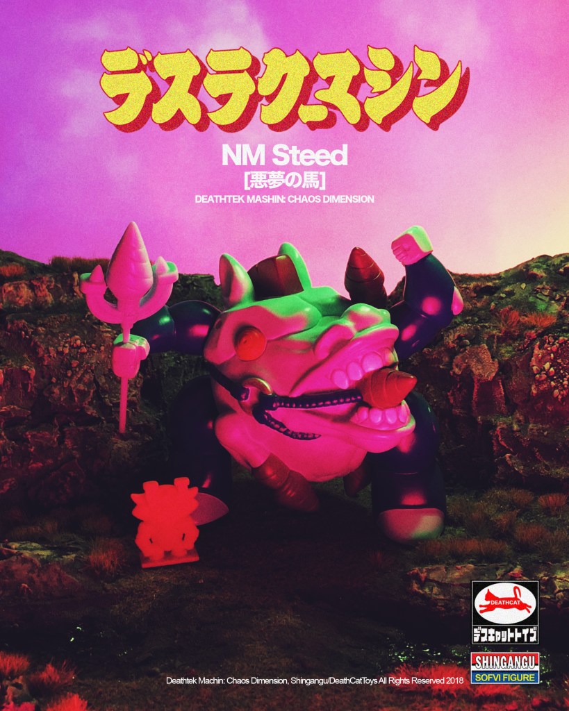 - Heavily inspired by Japanese series Wataru Hero Mashin and its Takara-produced plastic kit line, Deathtek Mashin features an initial line-up of 2 characters – Six Eye Okami from Tru:Tek and Nightmare Steed from DeathCat’s Johan Ulrich – both feature a similar head-torso design fitted with the same arms, legs and back plate; all sculpted by none other than Macsorro