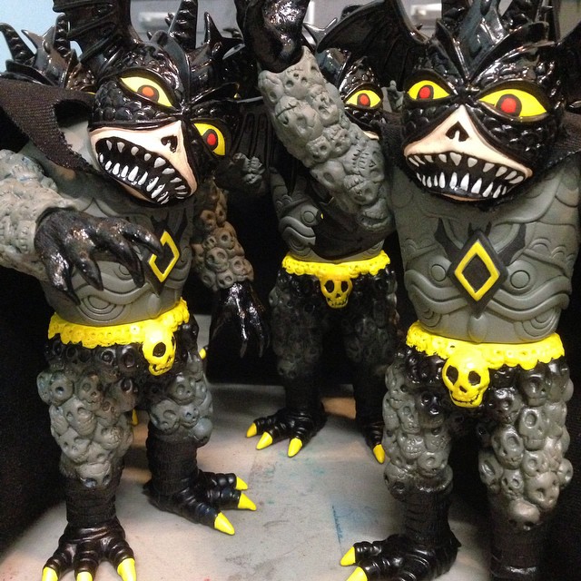 As if news of the Lulubell Toys sale wasn’t enough, Skinner has revealed that he will also be dropping his remaining Designer Con 2014 exclusives in the Critical Hit store at Noon PST today (11/11)! Whilst we’re still unsure as to exactly what will be on offer – we’re hoping for a Morgogg or two ourselves – we can confirm that there will be at least a few of the pictured “BogBat” Ultrus Bogs up for grabs. Produced in a classic Batman grey soft vinyl with a mix of both gloss and matt black/yellow sprays, the mischievous anti-heroes will be available at the specified time right here for $150 each plus shipping…