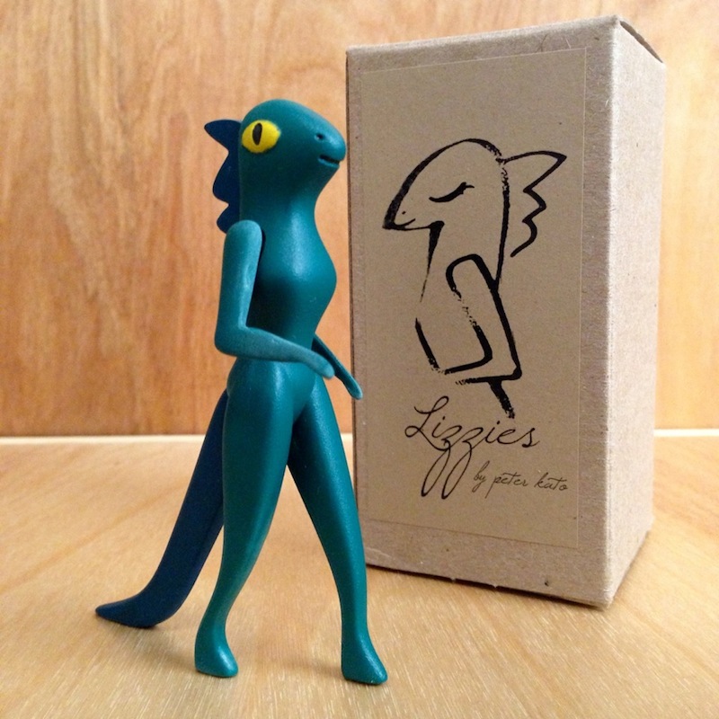Previewed here just yesterday, Peter Kato very kindly gives us the full lowdown on his latest batch of resin figures dropping this week, the Lady Lizards aka the Lizzies! Digitally sculpted by Peter at his Broklyn-based studio, the 3.5″ tall reptiles consist of 5 separately cast, multi-tinted and interlocking parts, with each coming assembled, hand painted and packaged in a custom box with a TBC accessory. Produced in a mix of complimentary aqua greens and blues for this first release, the limited batch of 15 figures will be touching down in Peter’s online store this Thursday, July 10th at Midnight EST for just $35 each plus shipping…