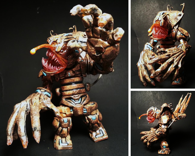 Never ceasing to amaze with his constant flow of custom work, Ersico comes with quite possibly his most accomplished figure to date, the incredible Angler Armorvor! Featuring a ton of custom parts and additional sculpting, including oversized claws, a huge mane and back pack extension, the figure is one of the first to use the new Godbeast x Jason Frailey “Terror from the Deep” head, coming cast in a clear orange resin with a Glyos jointed headpiece and articulated jaw. Painted in Ersico’s signature blend of layered weathering and detail hugging washes, the stunning figure should hopefully be up for grabs in the Ersico store at some point in the near future (price TBC)…