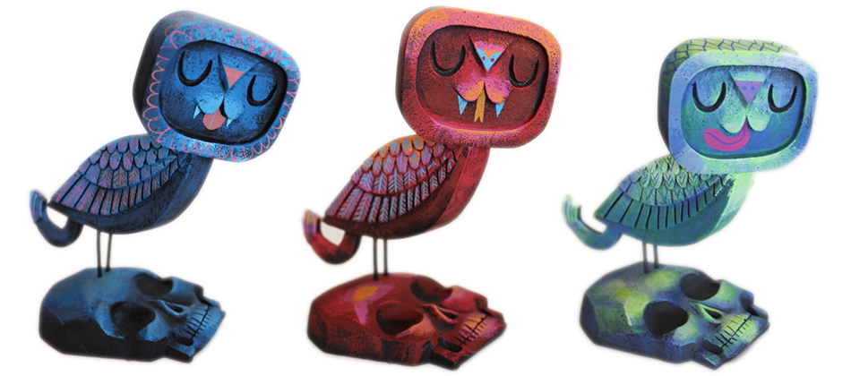 Fresh from the release of Primaries Wave 2, Amanda Visell is proud to present her latest one-off resin series, the Lowls. Limited to just 3 individually finished pieces this time around; the Fireberry, Licky and Nightengale, each has been hand cast and painted in Visell’s contrasting pastel/vivid paint style. Standing at an impressive 6″ x 6″ x 3″ around, the beautiful owl and lion cross can be yours for $350 plus postage through the Switcheroo web store. At the time of writing both the Fireberry and Nightengale have already sold-out, but our money’s on Vissel producing more of these mesmerising creatures in the near future…