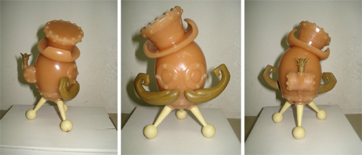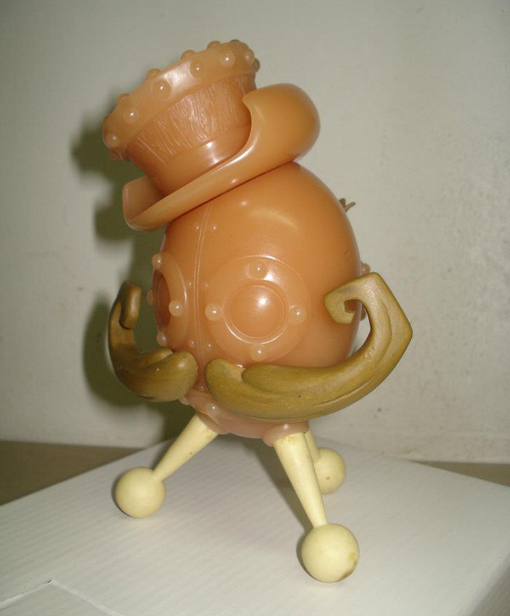Originally announced at last year’s Designer Con, Doktor A’s steam punk infused tripedal robot, Chester Runcorn, will soon be upon us. Revealed in its final wax state before production, the 5″ tall figure from Kuso Vinyl is set to come in an initial 2 colourways (original and gold), with an undisclosed price tag. Head over to the Dok’s site for more information…