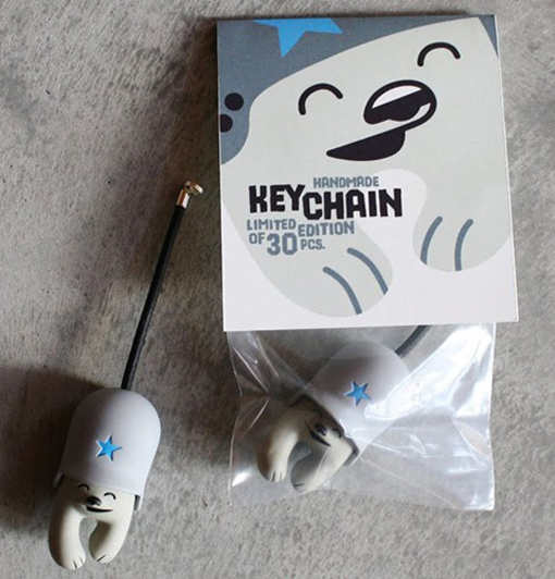 Posted a couple of weeks back, Flying Fortress‘ latest Teddy Troop incarnation finally saw the light of day this week. Coming in the form of a hand cast and painted key ring (solving the ‘how’s he going to stand up?’ debate!) from MUFFINMAN over at Fakehouse, the toy was limited to a batch of 30 which unfortunately sold out within an hour of hitting the Flying Fortress store. On the upside, the initial grey version is said to be the first of many to come this year (blue, yellow, and red ?), so be sure to keep checking the store for further updates…