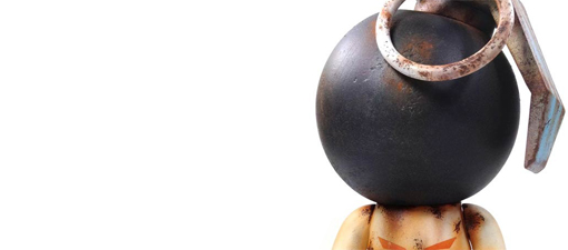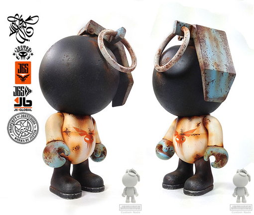Created for Aerosol Warfare’s upcoming ‘Blow Up L.A!’ show, custom artist JESTER unveiled his latest custom NADE this week. Featuring an authentically weathered metal look, the deceptively ornate piece will be sitting alongside over 30 other custom 10″ NADE and BUD toys come the show’s opening on February 9th (Crewest Gallery).