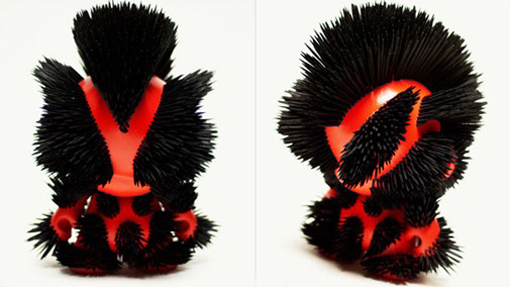 Swiftly following J*RYU this week, cut-out custom king Carson Catlin revealed yet another stunning entry for Dragatomi‘s upcoming ‘Year of the Dragon’ show, the 7″ Munny- ‘Seven Six’ (his birth year, and also a year of the Dragon). Featuring thousands of painstakingly applied bristles, the black and red dragon has got to be one of Carson’s best customs yet- here’s hoping we see more of this style in 2012!