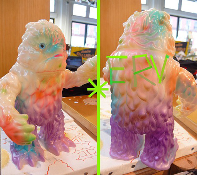 The elusive Kaiju Coup revealed his latest figure this week, with the ‘Warui Inu’ dog getting an official release through Medicom Toys in the form of a ‘Ghost’ edition. Limited to only 6 pieces, the 6.5″ tall vinyl figure comes with 2 motion activated led units set in color gels inside the head and body that project light effects through the clear vinyl. Available via e-mail lottery through kaijucoup@gmail.com, the figure will set the 6 lucky winners back $220 a piece.