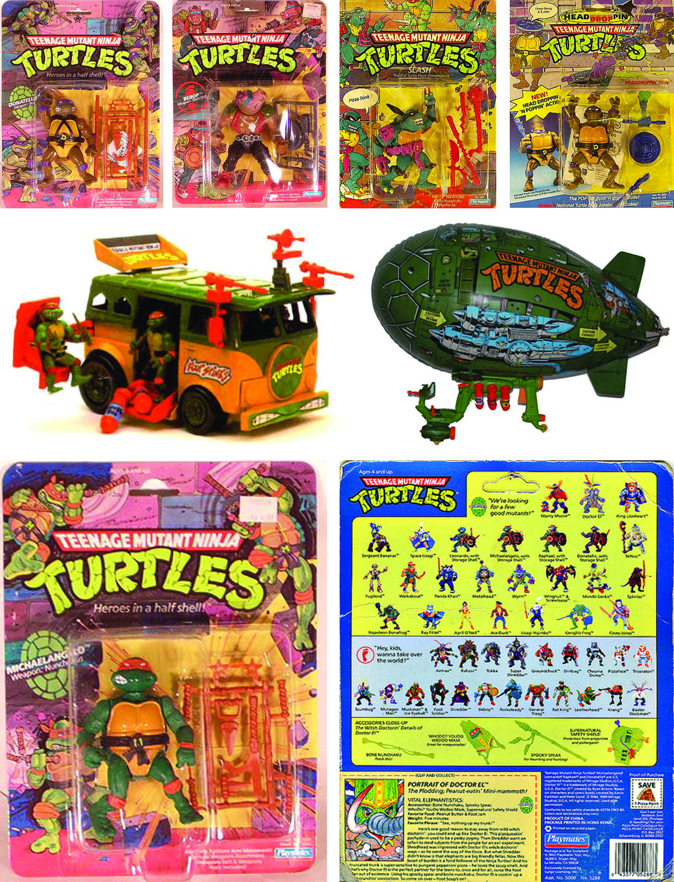 (Early TMNT package designs, 1988/89 Centre- Turtle Party Wagon/Blimp)